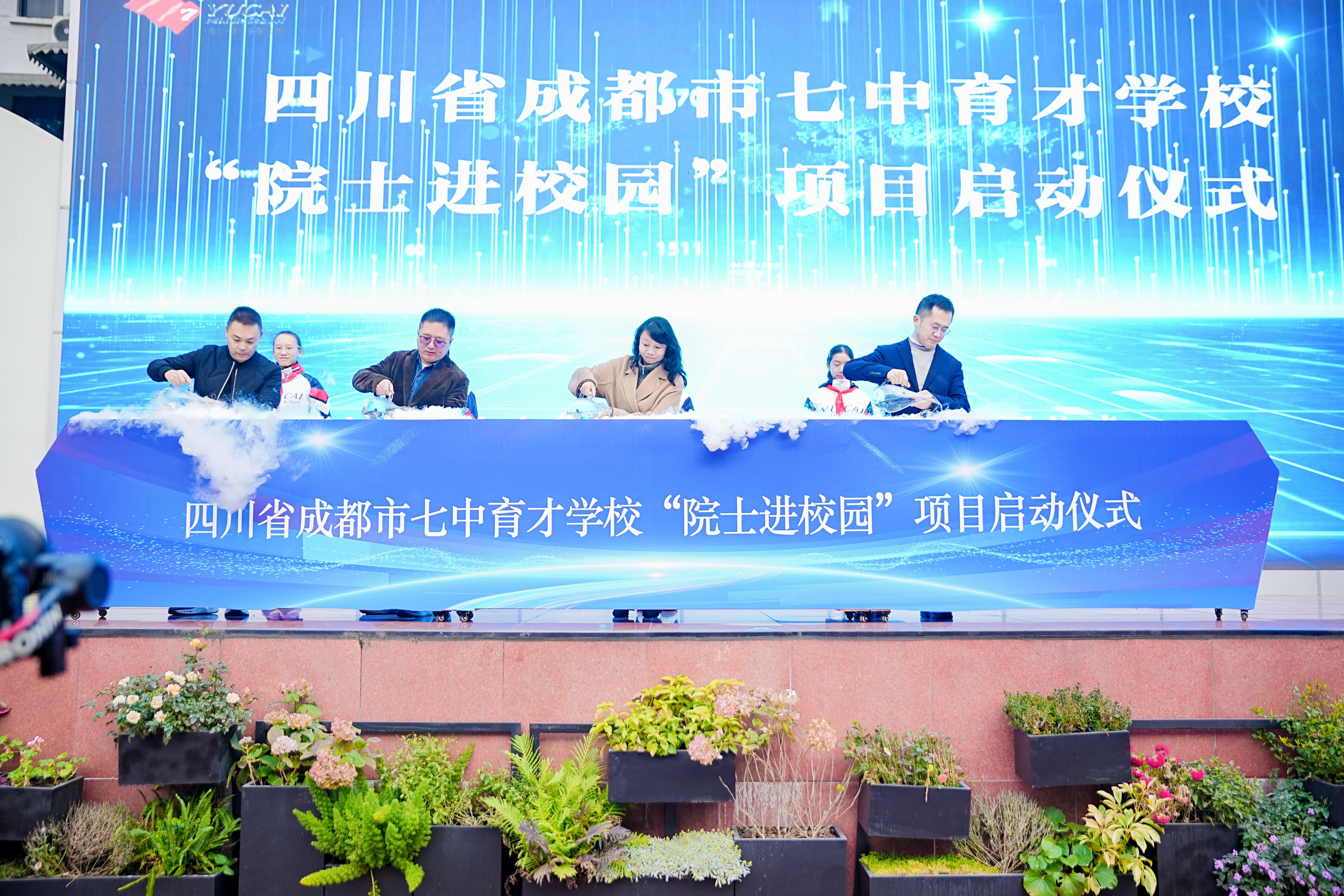 这场讲座不仅是知识的传递,更是一次价值观的启蒙。活动现场,成都市教育局科技处处长缪凯也寄语学子:“以好奇发问,以想象探路,以实践作答。”随后,他与七中育才教育集团校长臧玲、党委副书记叶德元、科学副校长张成刚等共同启动“院士进校园”项目,标志着这一高端科普机制将常态化落地校园,未来将定期邀请顶尖科学家走进课堂,搭建青少年与科学对话的桥梁。